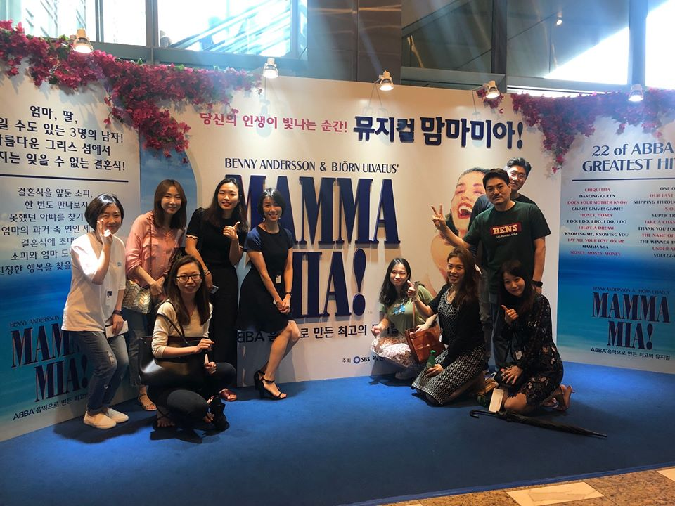 가장 최근에 진행된 활동으로, 뮤지컬 맘마미아 단체 관람을 소개해드리고자 합니다! 모두가 한 번 쯤은 들어봤던 맘마미아 노래를 코 앞에서 감상할 수 있는 기회였습니다. 직원들과 삼삼오오 어울려 회사에서 도보 5분 거리에 위치한 LG아트홀로 향해 도착한 후 인증샷도 남겼습니다!