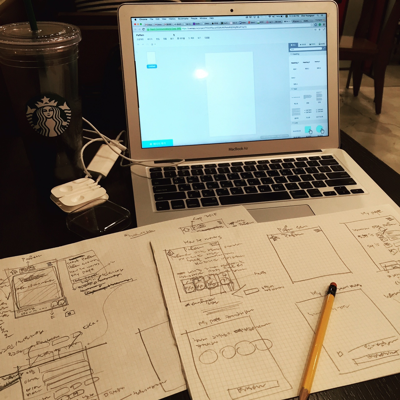 첫 번째는 powerpoint 1장에 만들고 싶은 주요 기능을 정리하는 형태로 하여 뼈대를 만들었고, 그 뼈대를 바탕으로 A4 지와 연필을 들고 이틀간을 고민하였다. 그렇게 해서 그림을 다 그리게 되었을 때, Daum에서 만든 prototyping tool인 oven을 통해 서비스를 구현하여 보았는데.. 썩 그럴듯해 보이더이다.