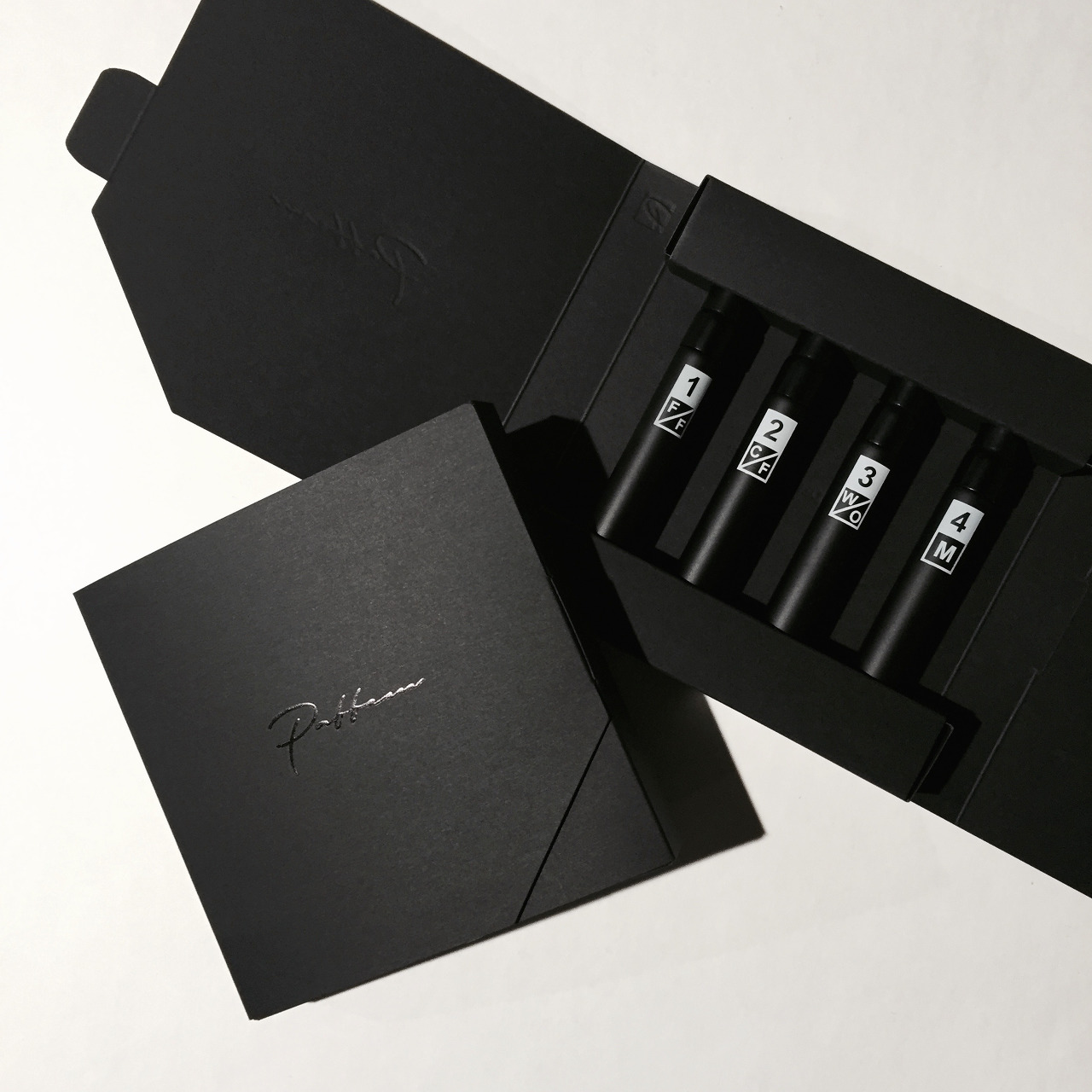 이러한 아이디어가 서비스의 출발점이다 보니.. 5ml 제품의 package 또한 향수라는 제품이 일반적으로 가지고 있는 향수 병의 선입견 (e.g. 아름다운 병 모양) 과는 다르게, 무광 검정 bottle에 묘하게 디자인된 category 분류용 기호만이 덩그렇게 달려있다. 파펨이 고객과의 대화 혹은 survey를 진행하게 되면, 왜 검정 바틀인가요? 혹은 투명한 것으로 바꿔주세요.. (물론 좋다고 말씀해 주시는 분들도 꽤 있다.. ^^;;)라는 의견들이 제법 있는데.. 사실 파펨의 indentity라는 부분을 쉽사리 바꿀 수는 없는 것이라, 오히려 왜 우리가 그렇게 디자인하였는지를 설명해드리는 편이다.
