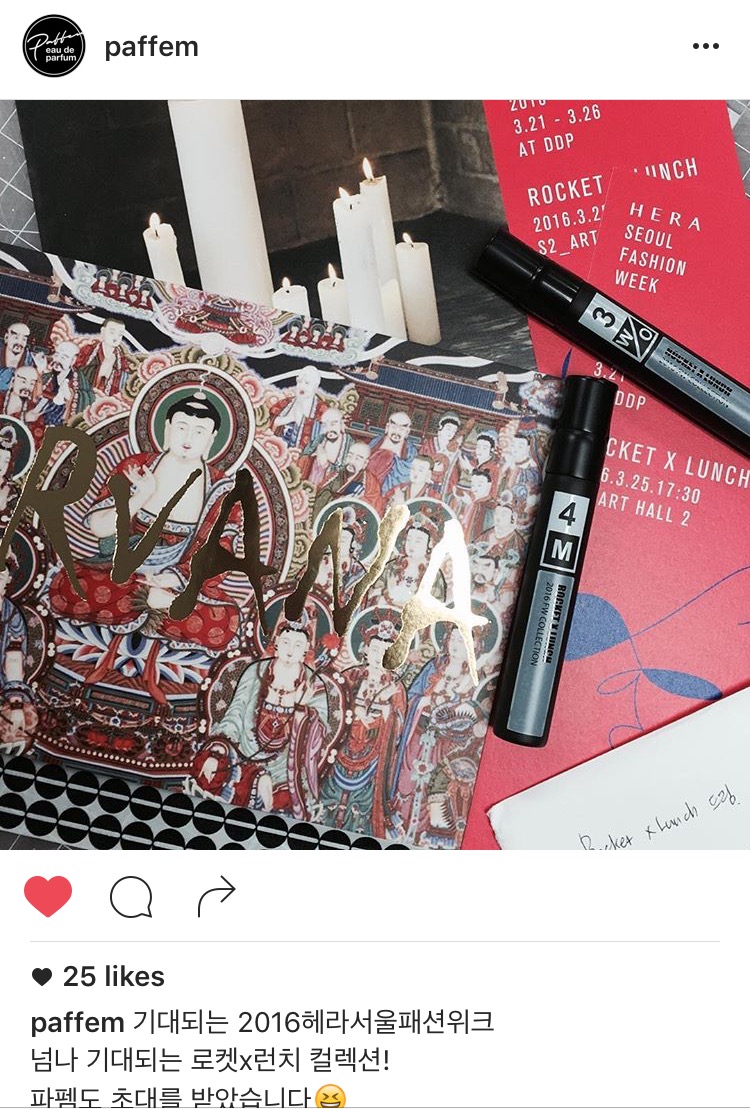 Fashion brand, ROCKET X LUNCH 2016 FW season : 열반(Nirvana)라는 컨셉에 맞는 향을 함께 선택하고 패션위크 참석자 분들에게 선물