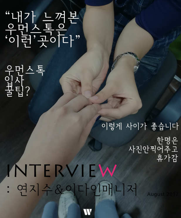 때는 약 3달 전. 우먼스톡에서 첫 공개채용을 실시하였습니다. 서류를 넘어 엄.근.진 1-2차 면접을 통과하고 함께하게 된 ‘동지’가 생긴 것이죠. 얼마 안 된 기간이지만, 급격히 친해진 동기님들과 (인터뷰를 빙자한) 티타임을 갖게 되었습니다.