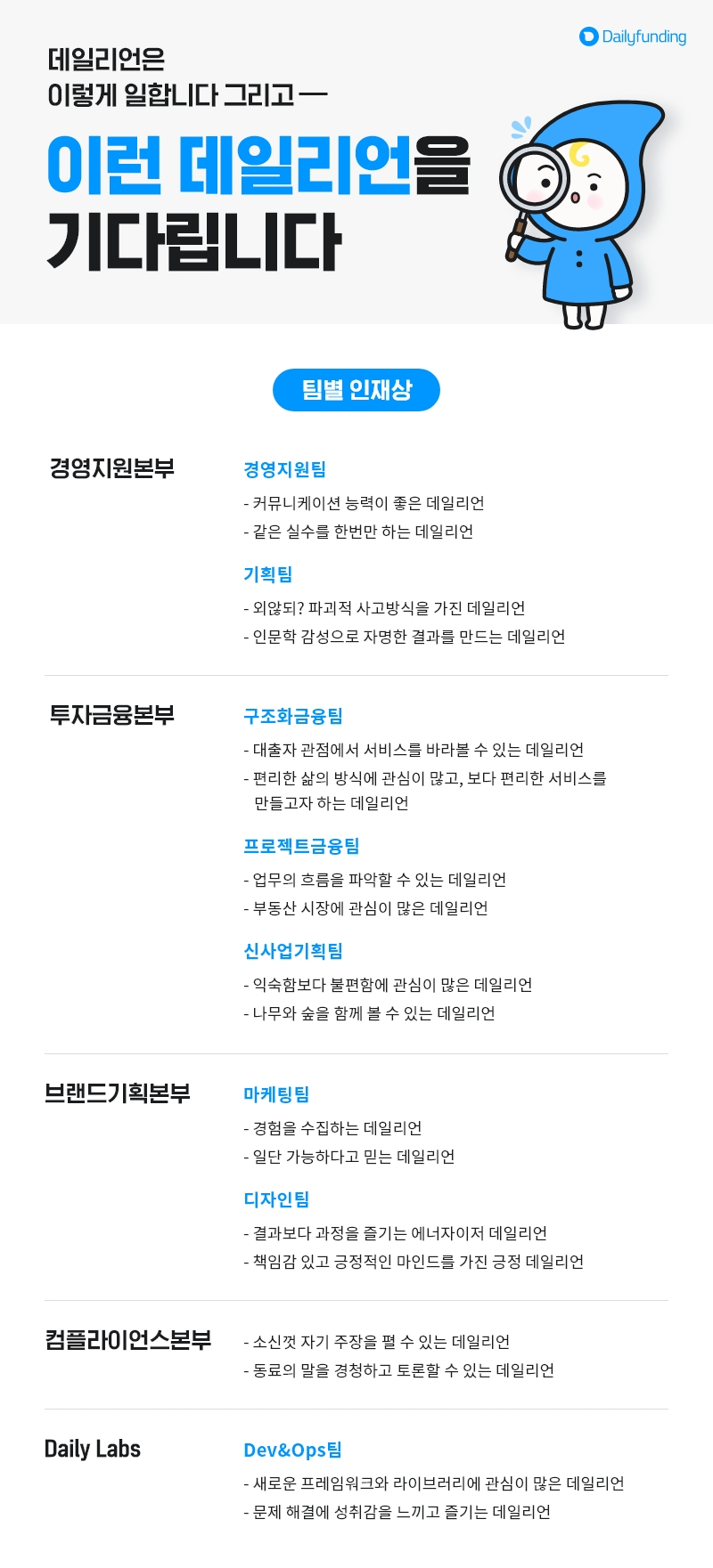 데일리펀딩을 대표하는 각 팀은 이런 데일리언을 찾고 있습니다!