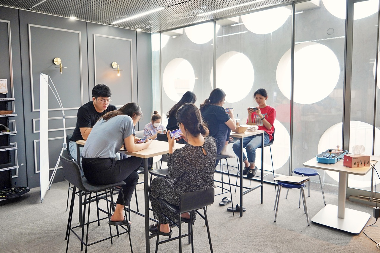 데일리펀딩에는 레트로 감성이 물씬 담긴 블루투스 스피커가 있는데요. 누구든 먼저 잡는 자가 그 날의 DJ가 된답니다. 본인 취향의 음악을 맘껏 들으며 일할 수 있다는 게 생각보다 강력한 무기. 가끔 90년대 노래가 나오면 '오늘의 DJ 아니세요?" 라며 의심을 받곤 하는데 전 블루투스랑 친하지 않아요.. 이 시스템의 장점이라면 가요프로는 언제 봤는지 기억도 안 나는 제가 어느새 최신곡을 다 알더라고요. 길 가다 들리는 음원차트를 점령한 노래들은 다 너무 익숙해. 그건 바로 열일하는 사내 DJ들 덕분입니다. 가요뿐만 아니라 뉴에이지, 클래식, 트로트부터 취향에 따라 가끔은 중국 고전가요도 나오는데 노래만 들어도 누군지 알 수 있을 정도로 개인의 취향 파악이 용이합니다. 물론 오늘은 왠지 음악을 듣고 싶지 않다면 이어폰을 착용할 수도, 다른 공간을 이용할 수도 있습니다.