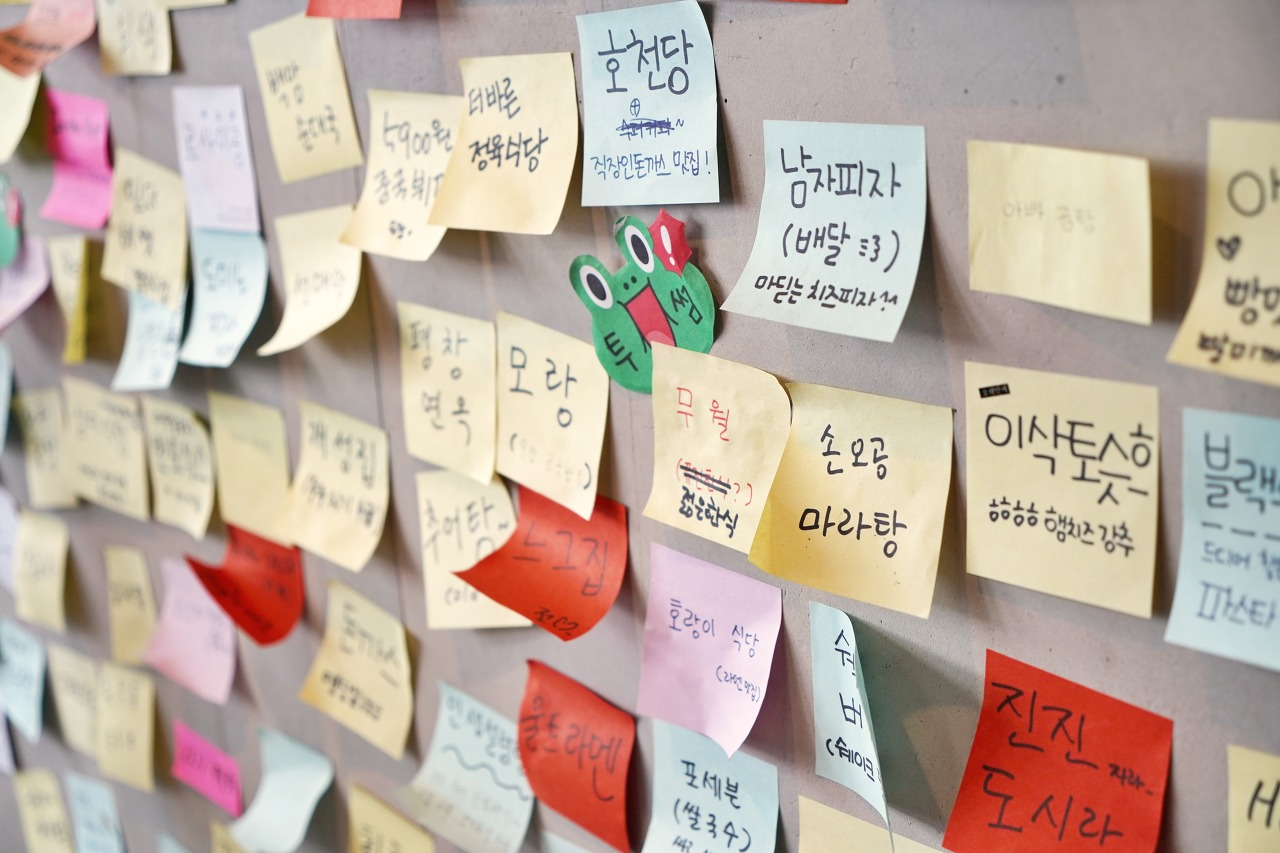 점심시간에는 내가 먹고 싶은 메뉴 써붙이면 되고 귀찮으면 다른 데일리언의 메뉴 중에 고르면 됩니다. 생각보다 점심 고르는 재미가 쏠쏠한데요. 꼭 팀이 아니더라도 원하는 메뉴, 다양한 데일리언들과 먹으며 못다 한 소소한 얘기도 할 수 있어 좋습니다. 참, 배달도 상~당히 활성화되어있는데요. 요즘 저는 3주 연속 샐러드 배달 모임에 참여하고 있답니다. 떠오르는 곳이 없을 때는 '수색조'에 참여하시면 새로운 식당도 찾을 수 있습니다.
