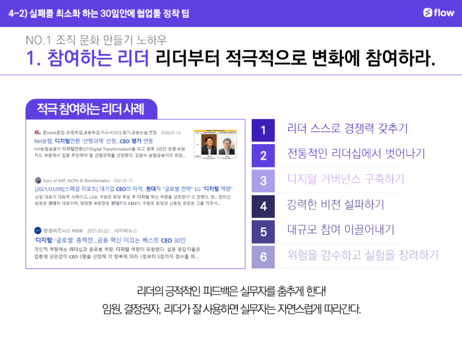 1️⃣ 참여하는 리더 - 리더부터 적극적으로 변화에 참여하라.