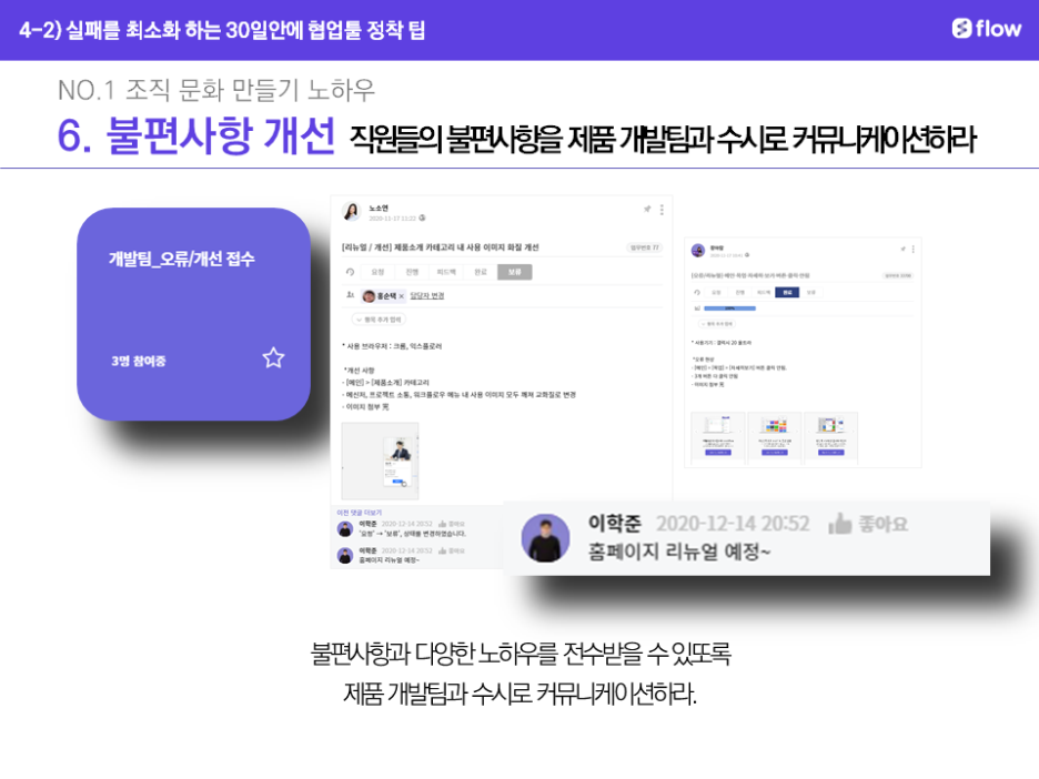 6️⃣ 불편사항 개선 - 직원들의 불편사항을 개발팀과 수시로 커뮤니케이션하라.