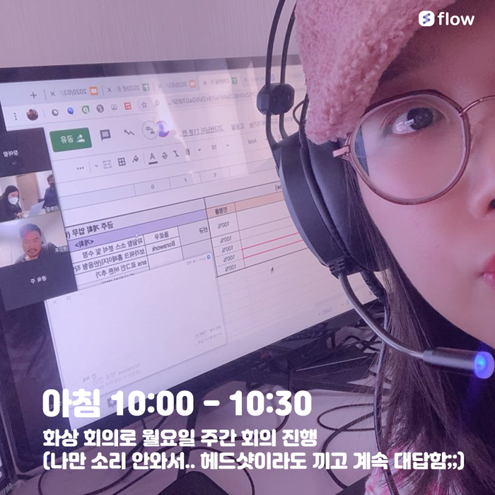 이에 플로우 직원들의 재택근무 방법이 다른 기업들에게 작게 나마 도움이 되길바라며 '솔직한 재택근무 시행기'를 들려드립니다. 팀마다 업무 속성이 다른 점을 고려하여 마케팅팀 > 고객지원팀 > 개발팀 > 디자인팀의 이야기를 순차적으로 업로드 하겠습니다.