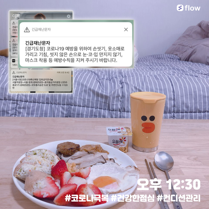 A. 전 날 저녁에 미리 점심을 준비 해 놨습니다.(원래도 저와 동생의 건강을 위해! 주 3일 이상 퇴근 후 요리를 해서 건강한 아침을 챙겨 먹고 있습니다.) 코로나19 사태에 대비하기 위해서는 개인의 위생/컨디션 관리가 가장 중요하다고 생각합니다.