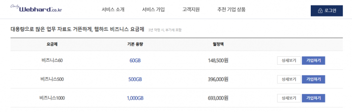 기업용 웹하드는 온라인으로 파일을 보관하기 위해 사용하기 때문에, 용량 체크가 중요한데요. 제일 먼저 용량에 따른 가격을 비교해봤습니다.
