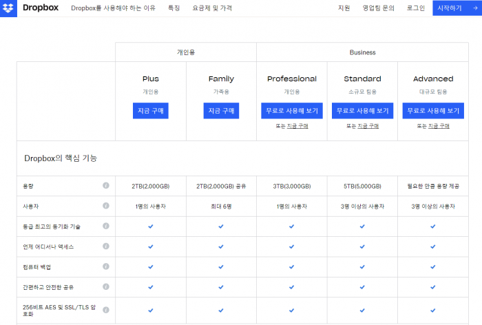 단순히 용량으로 따졌을 때 가장 가성비가 좋은 서비스는, 구글 Workspace의 비즈니스 플러스입니다. 1GB당 4원에 사용할 수 있죠. 하지만 1인당 가격이기 때문에 회사 직원들과 함께 사용하기에는 무리가 있습니다. 회사에서 최소 10명 이상이 사용한다고 생각한다면, 드롭박스의 Advanced가 용량 대비 가장 저렴하게 사용할 수 있습니다. 제공 용량이 무제한이기 때문이죠. 영상 같은 미디어를 취급하는 회사에서는 드롭박스가 가장 적합한 서비스가 아닐까 생각됩니다.
