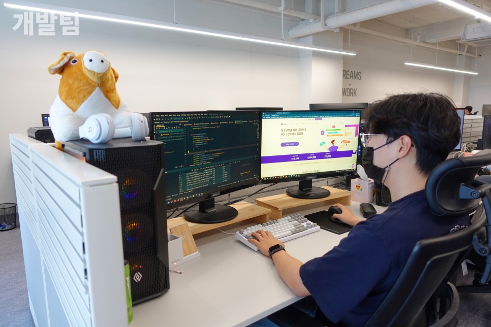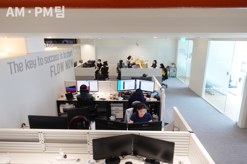 출근을 해서 가장 오랜 시간 앉아있는 공간인 업무 공간! 가장 중요하겠죠?팀 별 성향에 맞게 자율적으로 업무 공간을 꾸밀 수 있답니다. 공간'이 사람에게 미치는 영향은 어마어마하다고 해요. 왠지 더 크리에이티브한 상상력이 넘쳐날 것 같다는 기대감이 드는, 플로우의 업무 공간! 또한 개개인이 작업에 완전히 몰두 할 수 있는 넉넉한 개인 책상 공간과 타팀과 분리된 자리 배치로 플로우팀은 더욱 더 발전하고 있답니다!