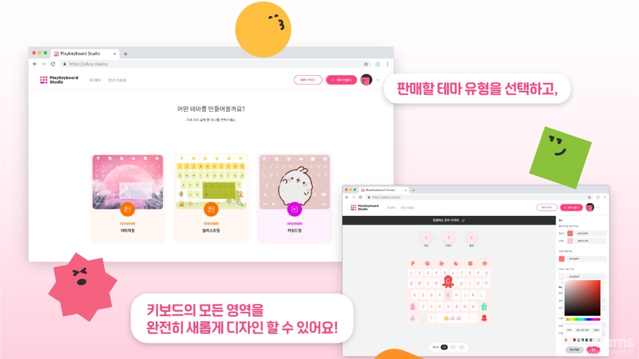 누구나 콘텐츠 테마 상품을 쉽고 빠르게 제작 및 상품화할 수 있는 '플레이키보드 스튜디오'를 서비스하고 있습니다.