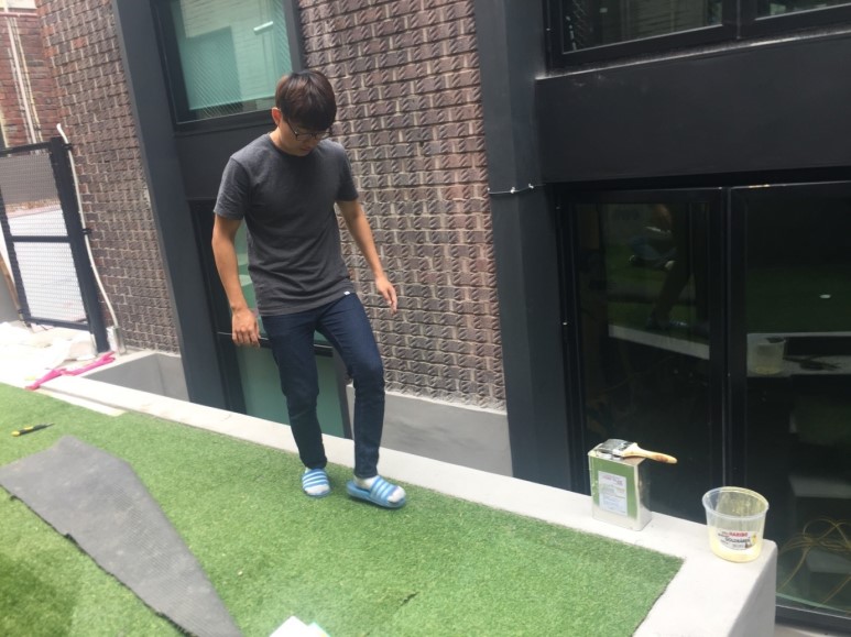 굿닥 사옥 이전할 때 사무실 뒤편의 테라스 공간에 잔디도 깔았고요, 뭐 톱질부터 기타 등등 많은 일을 했었죠(아련). 그래서 그런지 회사에서 제가 막 삼겹살 구워 먹고 그래도 대표님이 별말씀 안하시더라고요.