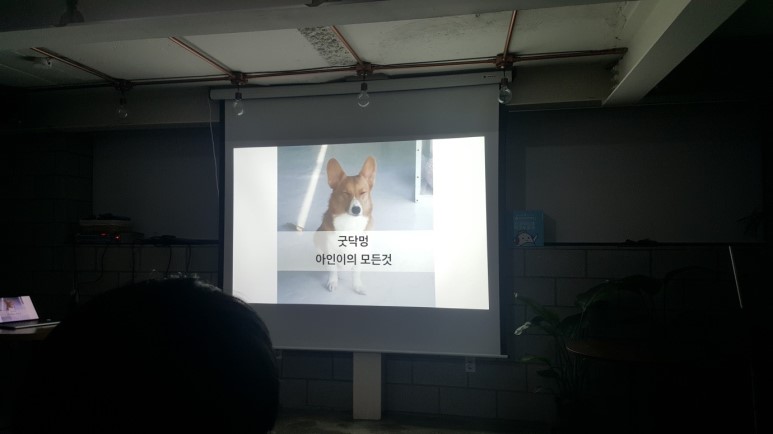 회사에서도 반려견과 함께 할 수 있다는 점이 정말 좋고, 또 굿닥만의 공간이 생긴 덕분에 원하는 강의나 모임을 마음껏 가질 수 있다는 게 큰 메리트에요. 요즘은 1층 굿닥카페에서 정기적으로 ‘스타트업 야간자습’이라는 스타트업 마케터 모임을 진행하고 있어요.