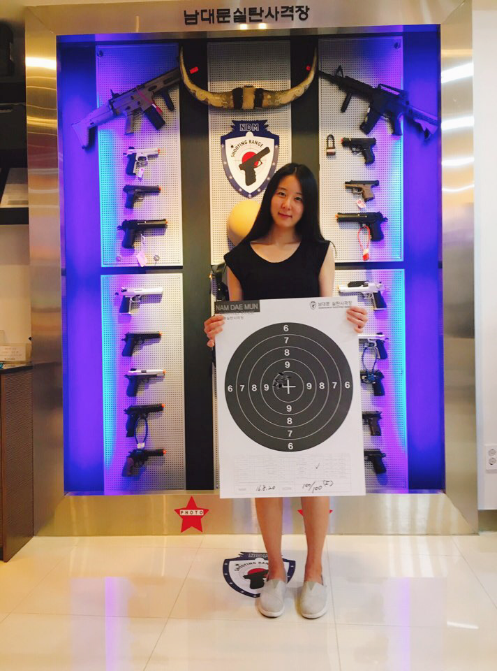 취미가 여러 개 있는데요, 그 중 하나는 사격입니다:) 남대문 근처에 실탄 사격장을 종종 가는데 지난 번 갔을 때 100점 만점에 100점을 받았어요!ㅋㅋㅋ