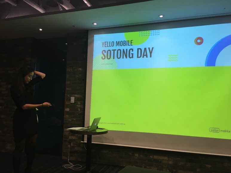 최근 옐로에 ‘소통’이라는 그룹이 만들어졌어요. 직원 소수가 모여 어떻게 하면 옐로모바일이 다니기 즐거운 회사가 될까 고민하고 아이디어를 내고 실행하는 그룹인데, 저도 멤버로 활동하고 있어요! 그룹이 만들어 지고 가장 처음 꼽았던 키워드는 ‘소통’이었어요. 서로 너무 바쁘다 보니 임직원끼리 소통할 수 있는 기회가 많지 않았거든요. 그래서 ‘소통데이’ 이벤트를 열고 서로 대화하는 시간을 가졌죠. 제가 사회자였답니다. (소근소근)