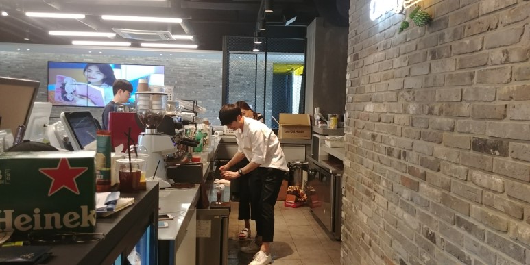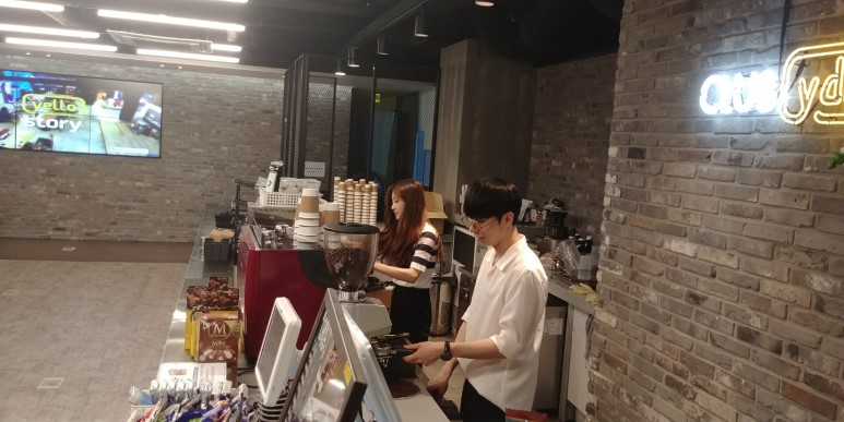 강혜빈: 크게 힘든 점은 없는데요, 딱 한가지! 음료 주문하시고 저희가 사원증 찍어 달라고 말씀 드린 후에 찍어 주셨으면 좋겠어요. 정말 가끔가다 주문 말씀하시자 마자 사원증을 찍는 분이 계신데, 그러면 기계 오류가 뜨게 되거든요ㅠㅠ