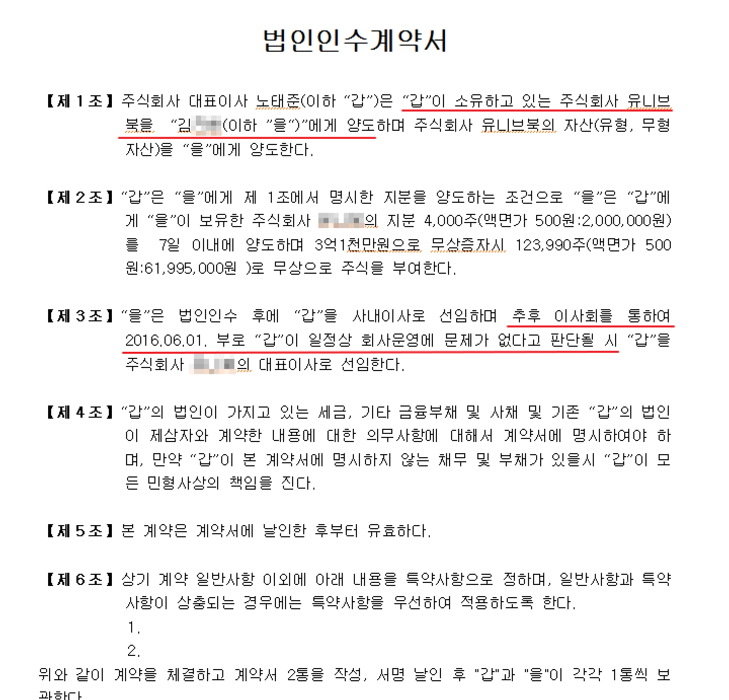 그리고 가장 중요한 것이 그 20%를 주는 조건으로 내가 가지고 있었던 기존 회사인 ‘유니브북’을 넘기는데 신설법인의 명의도 아닌 자신 개인의 명의로 기존 ‘유니브북’의 지분 100%를 넘기라고 말했다.