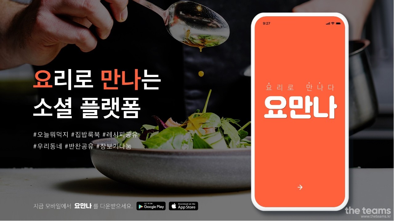 요만나는 요리가 음식을 준비하는 행위 그 이상의 가치가 있음을 믿습니다. 많은 사람에게 그 이상의 가치를 전달하기 위해 요만나는 존재합니다. 요리로 만나고, 만나서 요리할 수 있는 서비스를 제공합니다. 옆집 밥상에는 어떤 반찬이 올라가는지부터 어디서 장을 보는지, 옆집 식탁의 반찬을 교환도 하며 같이 장도 보고, 오늘 저녁은 어떤 메뉴를 하면 좋을지 추천까지 해주는 우리 동네 이웃들과의 요리 소셜링 플랫폼, 요만나입니다.