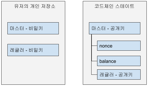 1) 랜덤으로 레귤러 비밀키/공개키 쌍을 생성 2) 미리 가지고 있던 마스터 키에 방금 생성한 레귤러 키를 등록 3) 레귤러 키로 서명한 파셀을 전송 4) 마스터 계정에서 차감된 수수료를 확인하여 레귤러 키가 제대로 저장되었는지 확인