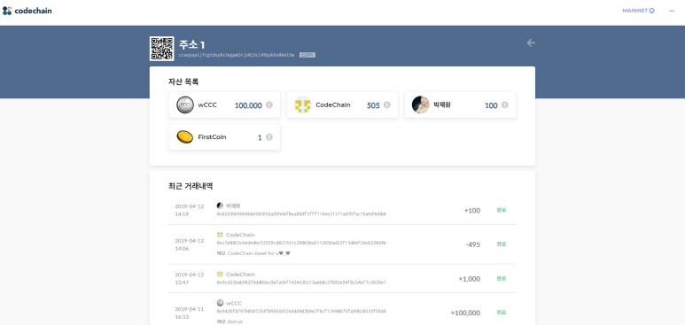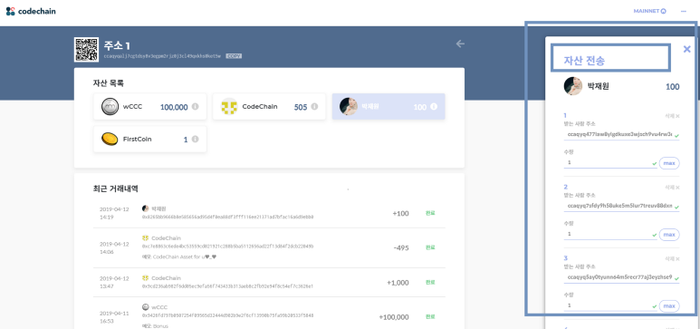 여기까지 코드체인 지갑에서 디지털 자산을 발행하고 전송하는 방법에 대해 설명해드렸습니다.