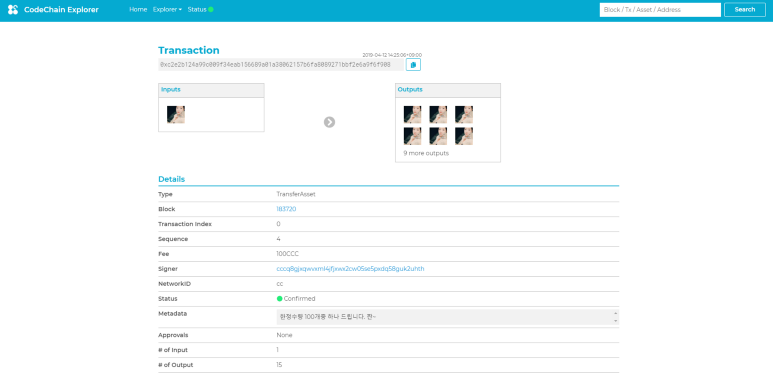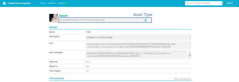 5. 전송된 디지털 자산이 각자의 지갑에 잘 들어갔는지 확인하려면 코드체인 익스플로러를 통해 보실 수 있습니다.