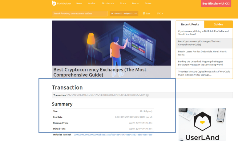 위 창에서 완료버튼을 눌러보시면, 비트코인과 및 코드체인 익스플로러를 통해 거래현황을 조회해 보실 수 있습니다.