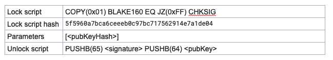 메인넷 주소는 “ccc”로 시작하고 Corgi 테스트넷 주소는 “wcc”로 시작한다. 버전과 Account ID를 Data part로 인코딩한다. 버전은 미래에 기능 추가를 위해 남겨둔 필드이고 현재 1만 존재한다. Account ID는 공개키를 BLAKE160 해시를 돌려서 나오는 값이다. 이더리움 주소와 비교해서 메인넷/테스트넷 구분이 가능하고 체크섬이 존재하기 때문에 잘못된 주소 사용을 방지할 수 있는 장점이 있다.