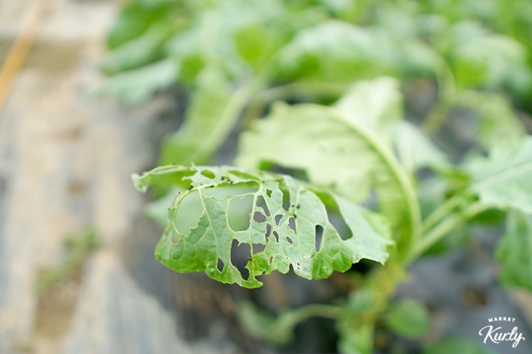 (승현) 그리고 보시면 아시겠지만 올해 폭염으로 인해 케일의 상태가 많이 좋지 않아요. 온전한 이파리를 찾기가 힘들 정도죠. 사실 유기농 상품이라 벌레 먹은 구멍은 어쩔 수가 없는 부분이긴 한데, 항상 믿고 구입해주시는 고객님들을 위해 컬리는 최대한 싱싱한 상품만을 골라 보내드리려고 합니다.