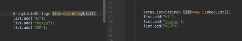 List를 Interface 선언 함으로서 우리는 아래와 같은 소스코드 변경이 가능하다