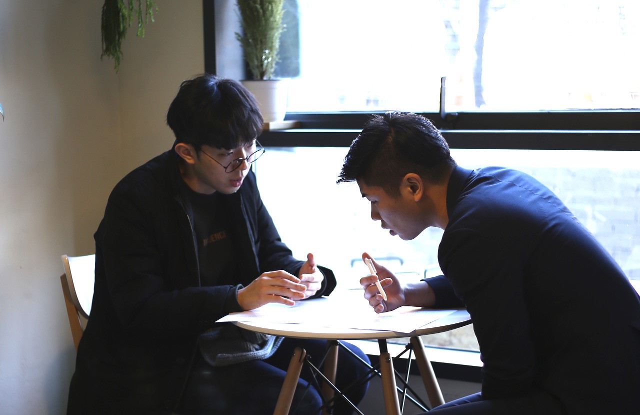 인터뷰 시작 전, 이야기를 나누고 있는 모습. 이 과정에서 많은 이야기들을 조율하고 합의한 다음 인터뷰에 들어가게 된다.
