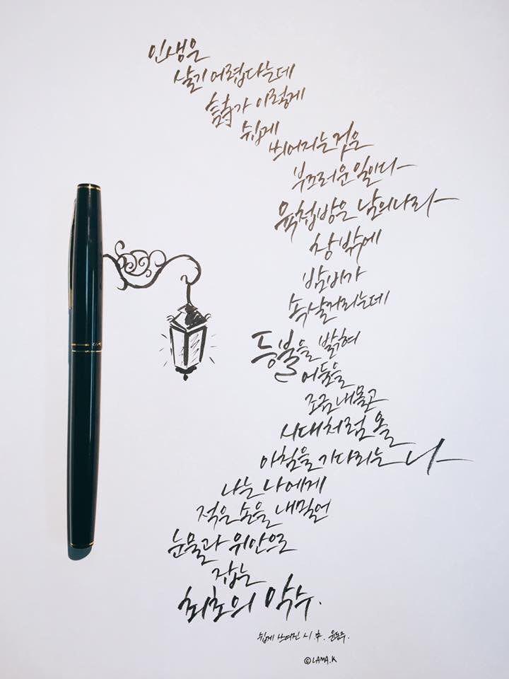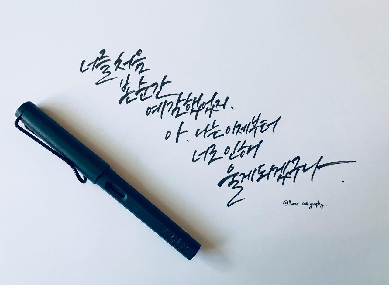 가장 좋은 건, 캘리를 쓰는 시간만큼은 온전히 나만의 시간이 된다는 점이었어요. 음악 가사를 써보면서 내용을 곱씹기도 하고, 좋아하는 영화 제목을 쓰면서 포스터에 합성도 해보고, 좋아하는 시를 필사하면서 혼자 뽕 감성에 젖어 새벽 시간을 보내기도 했어요.