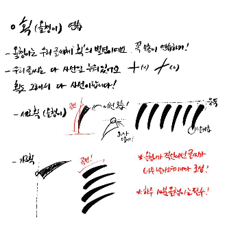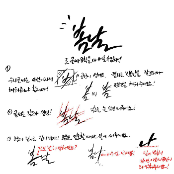 기본적인 글씨의 형성 원리, 반복적인 획 훈련, 그리고 꾸준히 시간을 투자하는 것만으로도 우리의 글씨는 몇 배나 더 나아질 수 있는데, 캘리그라피의 화려한 면만 보고서는 지레 겁먹고 포기해 버리는 것이죠. 물론 손재주가 있으면 더 쉽게 할 수는 있지만, 없어도 누구나 쉽게 할 수 있다는 것은 변하지 않는 진리입니다.