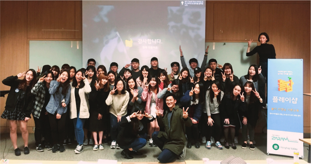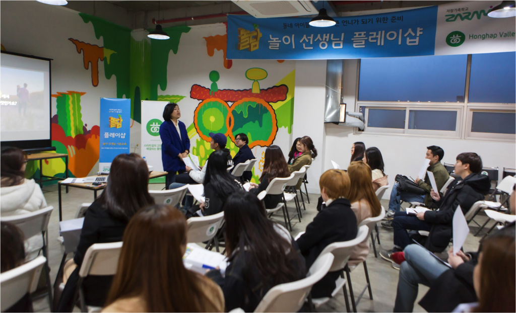 놀담의 대학생 놀이 선생님은 아이들이 가장 좋아하는 놀이를 누구보다 잘 알고 있는 놀이 전문가들입니다. 놀담은 놀이선생님을 양성하기 위해 두 시간의 정규 교육 “씨앗교육”과 놀이에 대한 전문 교육 “새싹교육”의 자리를 두어