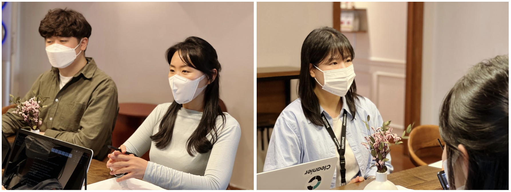 개발팀 세분과 함께한 그룹 인터뷰였는데요, 이야깃거리가 아주 풍성할 것 같은 기대감 속에서 진행 되었답니다.