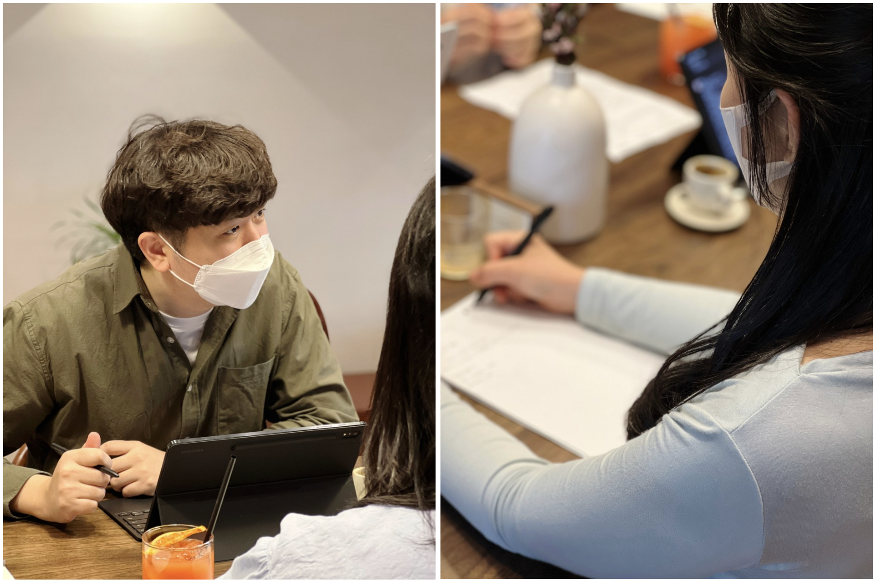 용운 저희는 기획이나 디자인 얘기하고 있으면 담당자분들이 저희 대화를 들으시면서 실시간으로 바꾸세요. 갑자기 마우스가 막 움직이는 게 보여요.ㅎㅎ 그러다가 답답하시면 직접 찾아오셔서 대화하고 그래요.