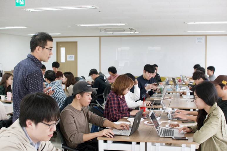 ์จ๋ผ์ธ-๋ฆฌ๋ชจํธ๋ก ๊ทผ๋ฌด๋ ํ ์ ์๋ ์ ๊ณ ํ๋ฆ์ ๋ณด๋ฉด SW๊ต์ก์์ ์คํ๋ผ์ธ ๊ณต๊ฐ์ด ์ฃผ๋ ์ํฅ๋ ฅ์ด ๋ค๋ฅธ ๊ต์ก์ ์๋์ ์ผ๋ก ๋ฎ์ ์๋ ์๋ค. ๋ฐ๋ฉด์ MOOC ๋ ์จ๋ผ์ธ ๊ต์ก๋ง์ผ๋ก ์ฑ์ฅํ ์ ์๋ ํ๊ณ๋ ๋ช ํํ๋ค. 2017๋  ๊ฒจ์ธ์ ๋ฑ ๋ฑ ์ฌ๊ฑฐ๋ฆฌ๋ก ์ด์ฌํ ๋ ๊ฐ์ก๋ ๊ต์ก ๊ณต๊ฐ์ ๋ํ ์ฒ ํ์ โ์ค์ค๋ก ํ์ตํ๊ณ , ๋๋ฃ์ ํจ๊ป ์ฑ์ฅํ๊ณ , ๋ง์คํฐ์ ๊ฐ์ด ์ํํ๋ค.โ ์๋ค. ์ด์  3๊ฐ ํด๋์ค์์ 40๋ช ์ ๋๊ฐ ๊ฐ์ ํ์ตํ๋ฉฐ, ๊ฒฝ์ ๋์ ํฉ๋ ฅํ๋ฉฐ ํจ๊ป ์ฑ์ฅํ๊ณ ์๋ค.