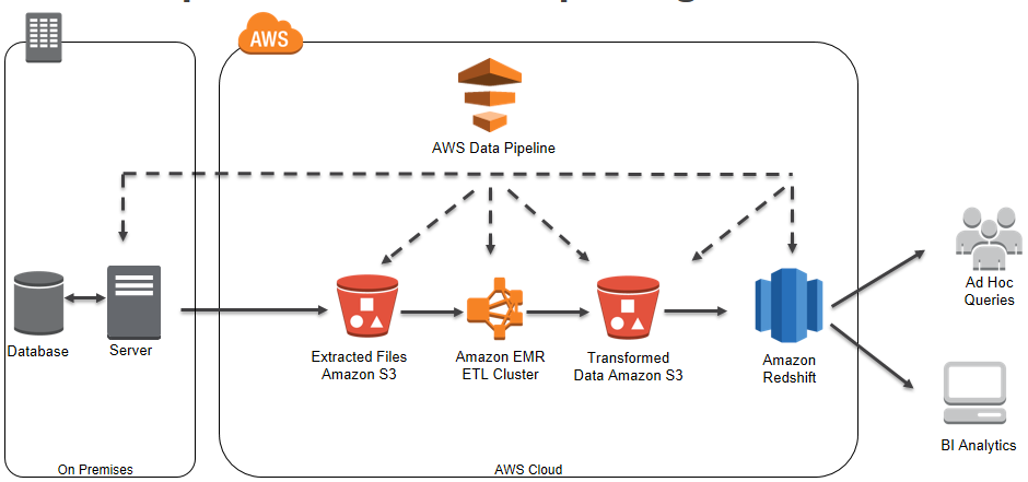 일반적인 형태의 ETL 프로세스를 활용(출처: Amazon)