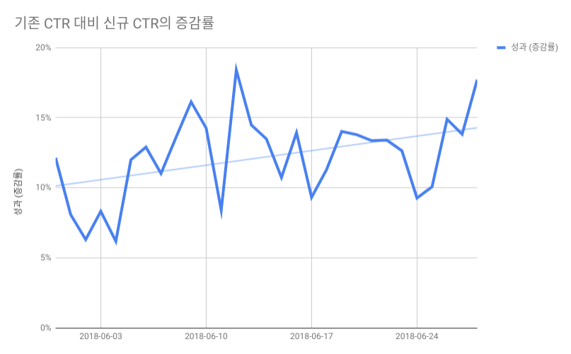 기존 시스템의 CTR 대비 신규 추천시스템의 CTR 증감율
