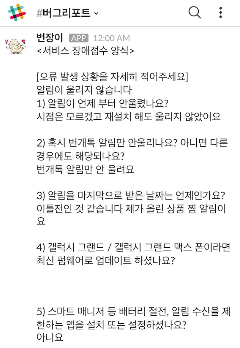 영원할것 같았던 Go로 구성된 푸쉬시스템에 2017년 11월부터 균열음이 생기기 시작했습니다. 간헐적으로 푸쉬가 유저에게 도달하지 못하거나, 많이 지연되는 상황이 일어났습니다. 이는 많은 사용자의 불편함을 초래했습니다. C2C기반의 커머스 서비스를 지원하는 번개장터의 특성상 푸쉬는 매우 중요한 역할을 하고 있었기에, 번개장터 버그리포트에는 푸쉬에 대한 불편사항이 하루가 멀다하고 쌓여만 갔습니다.