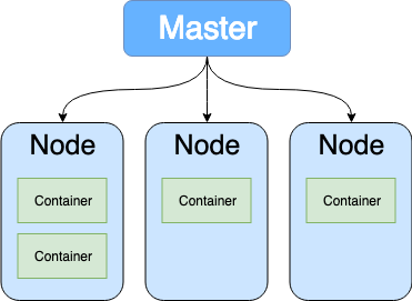 먼저 k8s는 클러스터가 크게 두 종류로 이루어집니다. 바로 Master와 Node인데 굉장히 간단한 구조입니다. 전체 클러스터를 관리하는 Master가 존재하고 실제 컨테이너가 배포되는 노드가 존재합니다. 그림으로 표현하면 아래와 같습니다.