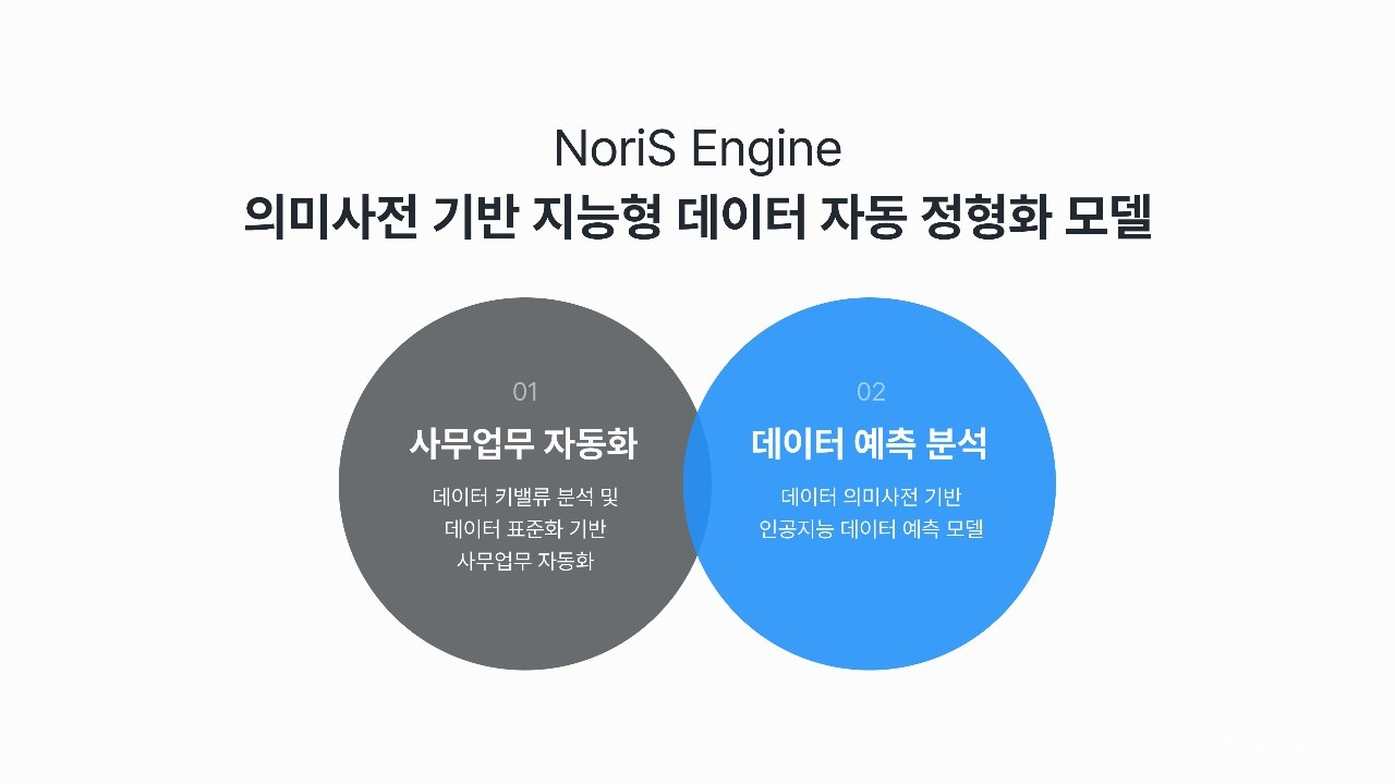 노리스페이스의 핵심 기술인 노리스 엔진(NoriS Engine)은 의미사전 기반의 지능형 데이터 자동 정형화 모델로서, 사무업무자동화 뿐만 아니라 데이터를 예측 및 분석하여 기업 데이터 자산의 활용가치를 높이고, 직원이 고부가가치 업무에 집중할 수 있도록 지원합니다.