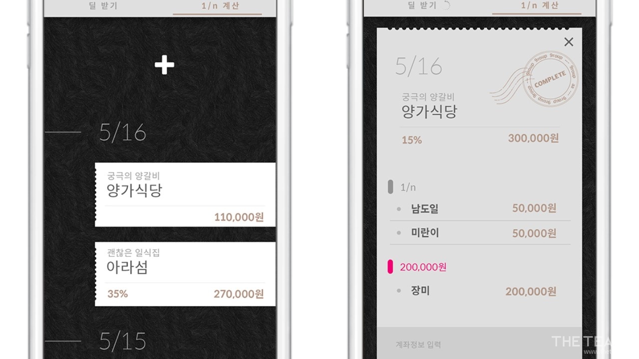 9룹에서 결제 금액을 1/n 혹은 원하는 비율별로 나눠 자동으로 영수증을 만들어 드립니다.