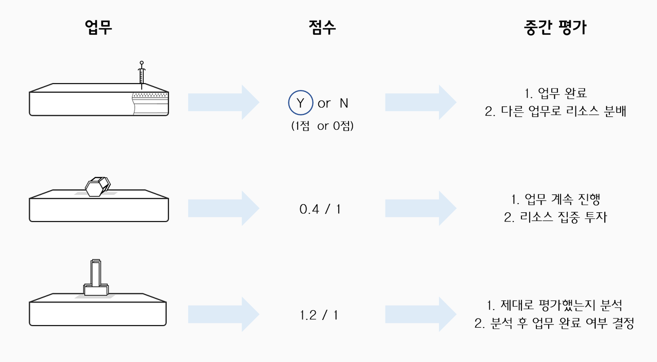 - 1점일 경우 해당 업무에 쏟았던 리소스를 다른 업무에 투자