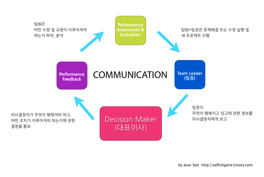 네트워킹뱅크 (이하 넷벵)의 팀원-팀장-의사결정자간의 소통을 다이어그램으로 그려보았다. 현재, 이주일 마다 돌아가면서 팀원분들이 팀장을 맡고 순번이 다 돌아가면 팀 내부에서의 추천과 대표님의 선정으로 대표 팀장이 8월에 선출된다. 팀장이라는 역할은 우리가 알고 있는 직급이 높은 상사가 아니라, 팀원과 의사결정자 사이의 커뮤니케이션을 용이하게 하고 팀의 활동 계획을 세우고 팀원들을 신경쓰는, 팀에서의 리더이다.