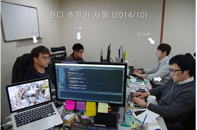 C: 제대를 3개월 앞둔 군인 시절, 아이폰 개발자를 찾는 연락을 받았다. 그렇지 않아도 제대하고 바로 개발 경험을 쌓을 수 있었으면 좋겠다고 생각했다. 솔직히 말하면 그 당시엔 잔디가 어떤 회사인지 탐색이나 해보자는 생각에 멤버들을 만났다.