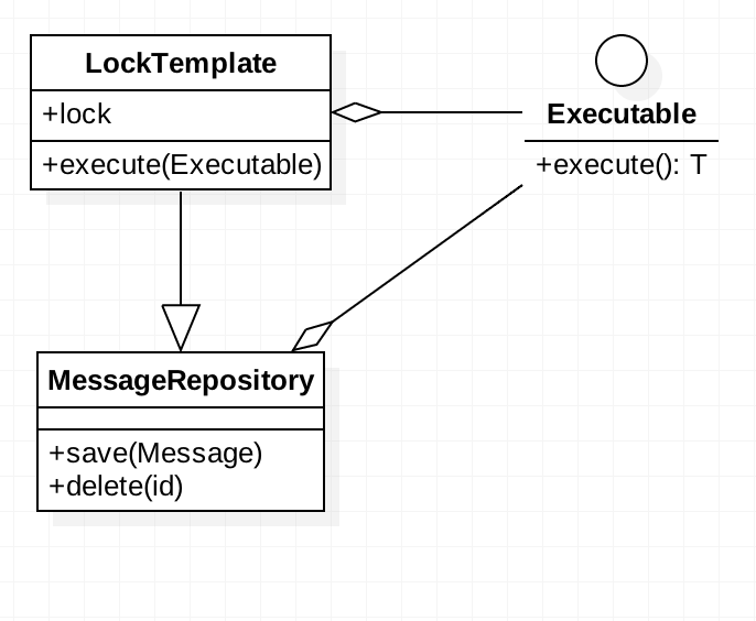 public class LockTemplate {  private Lock executorLock;  LockTemplate() {    executorLock = new ReentranceLock();  }  protected  T execute(Executable e) {    executorLock.lock();    try {      return e.execute();    } finally {      executorLock.unlock();    }  }