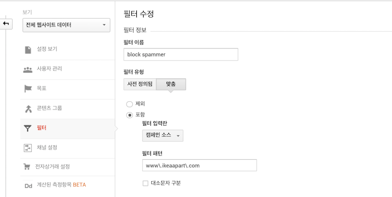 whitelist 형태의 filter를 이용해서 유효한 hostname을 가진 트래픽만 GA에서 받아들이도록 하면 하나의 filter로 ghost spam traffic을 모두 차단 할 수 있다.