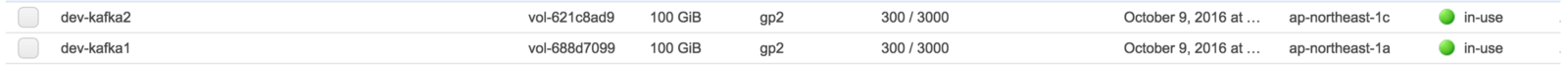 default1a를 선택하면 ap-northeast-1a Availablity Zone에 기가바이트당 IOPS는 10인 General SSD EBS 볼륨을 생성한다. 이제 다시 Kafka의 돌아가면