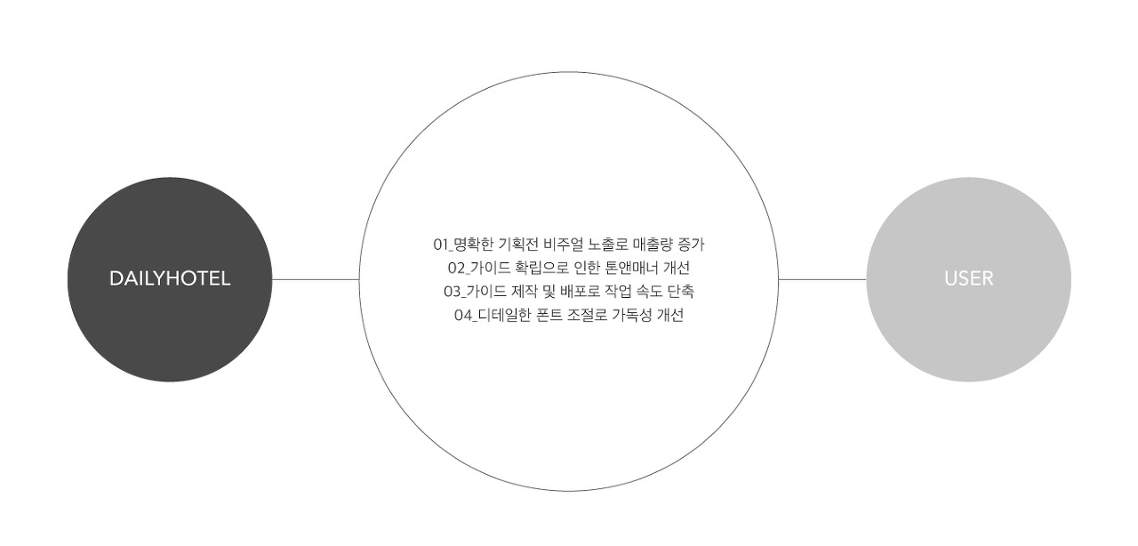 위 두가지를 기반으로 데일리의 브랜드 디자인 키워드에 맞춰 아래와 같은 구체적인 방향을 설정하였습니다.